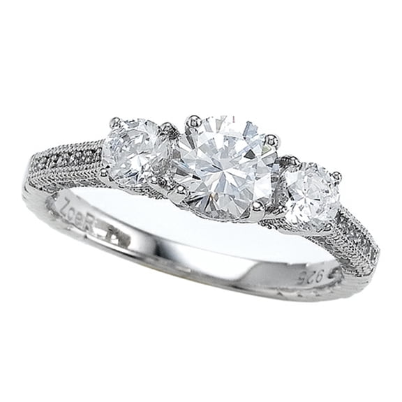 Available in additional 2 optionsZoe R� 925 Sterling Silver Micro Pave Hand Set Cubic Zirconia (CZ) 3 Stone Engagement Ring