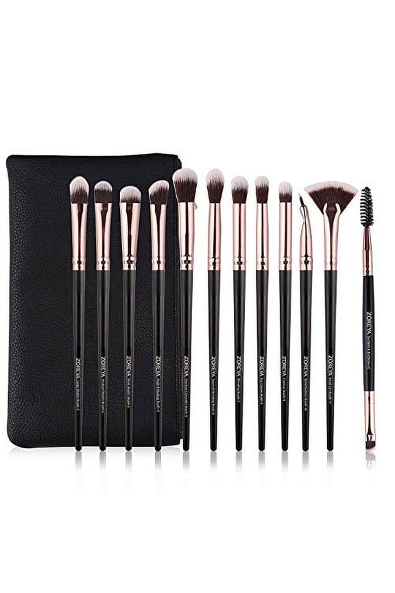 Eye Makeup Brushes, 12 Pcs Professional Eye Brush Set Eyeshadow, Eyebrow, Blending, Fan, Eyelash Brushes Set With Carrying Bag (Black)