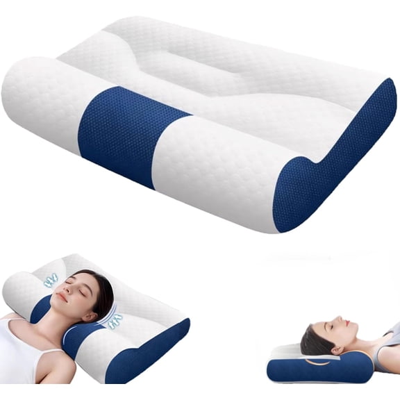 Cloud Pillow - Ergonomic Memory Foam Pillows Adjustable Neck Support with Breathable Pillowcase for Side Back Stomach Sleepers, Gift (Dark Blue) From $39.79