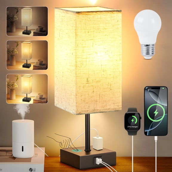 Best seller Walchoice Touch Control Table Lamp for Bedroom, 3-Way Dimmable Desk Lamp with USB A+C Charging Ports & 2-Prong AC Outlets, Nightstand Lamp with Rectangular Flaxen Shade $22.99 Was $35.99