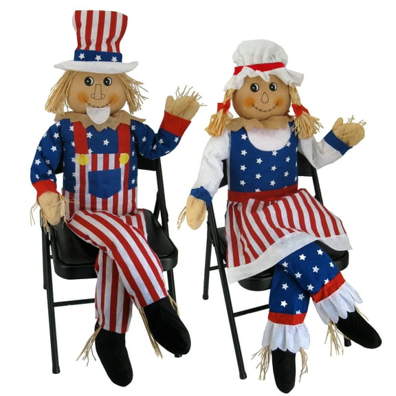 current price $79.9560" Large Sitting Scarecrow Couple Pair Uncle Sam Patriotic Fall Decoration