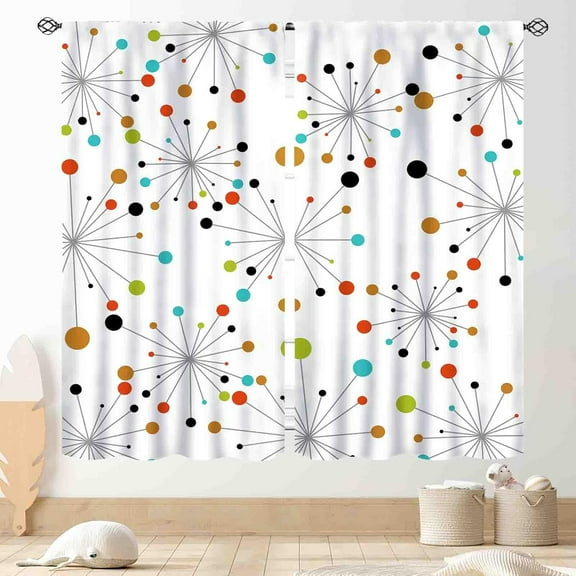 Mid Century Curtains, 1950s Vintage Style Atomic Background Pattern Window Treatments, Rod Pocket Thermal Insulated Drapes 2 Panel Sets for Bedroom Living Rooms, 84" W X 84" L From $19.99