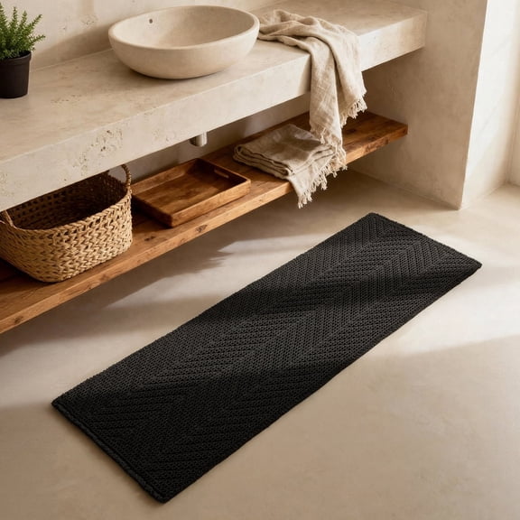 BULULOM Long Bathroom Rug, Waffle Bath Mat Runner Non Slip Washable Super Absorbent Quick Dry, Boho Farmhouse Bath Decor, 24"x72" Black From $13.49