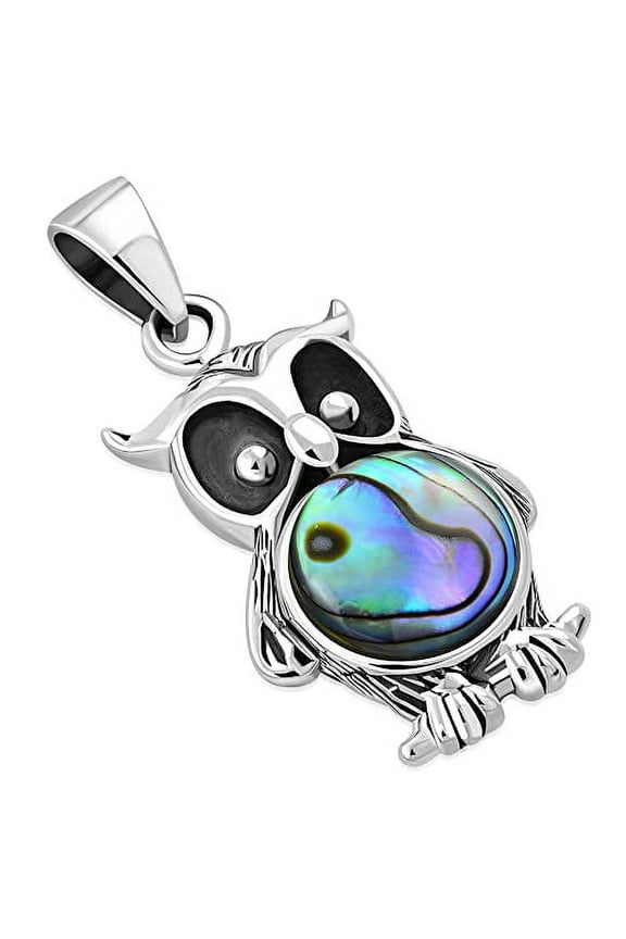 Created Abalone Shell 925 Sterling Silver Night Owl Pendant Necklace, 18"Reduced price Vintage Inspired Round Abalone Shell with Leaf Accents Sterling Silver Ring - 7 From $26.09 Was $28.99