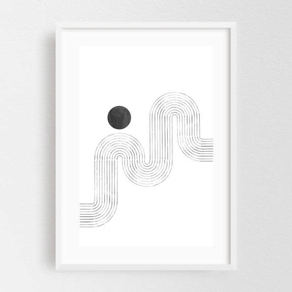 Abstract curved line art - Line Drawing Abstract Geometric Minimalist Black and White Modern Art Line Art Pattern Unframed Wall Art Print 8 x 12 inches