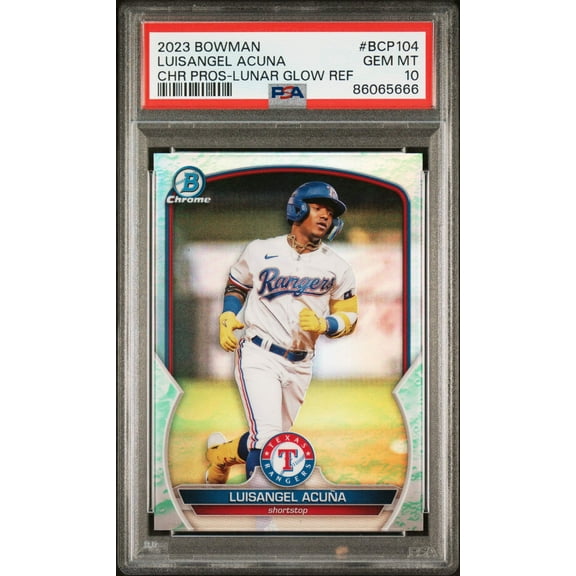 Graded 2023 Topps Bowman Luisangel Acuna #BCP104 Chrome Prospects Lunar Glow Refractor Rookie RC Baseball Card PSA 10 Gem Mint