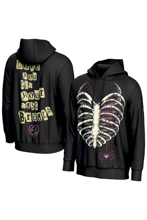 Men's ProSphere Black AJ Lee Ribcage HoodieAJ Lee Love Bites Retro T-Shirt Crewneck Short Sleeve Sport Black Tee Men Women Streetwear Tops