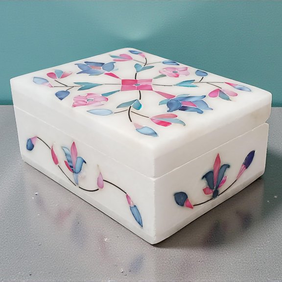 current price $105.00Marble Inlay Jewelry Box 4x3inch Floral Mother of Inlay Handmade Makeup Organizer Trinket Box - Alabaster Shiny Decorative Marble Ring Box Inlay Art Unique Art Great Birthday Gift, Women Gift Y101