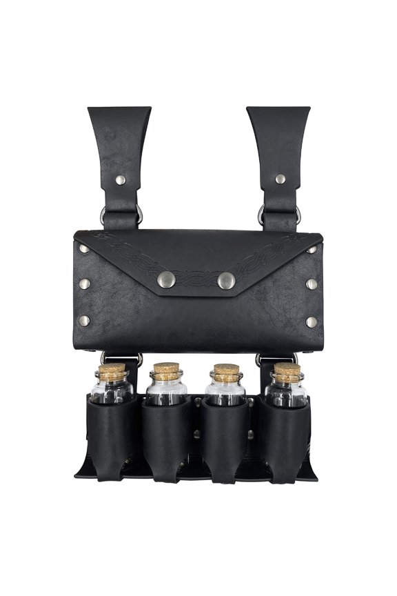 Clearance Medieval Alchemy Belt Bag with 4 Cork Potion Vials, Fantasy Wizard Waist Pouch Side Pack with Glass Vials Wizard Waist Pouch Side Pack(Black) $24.00 Was $29.20