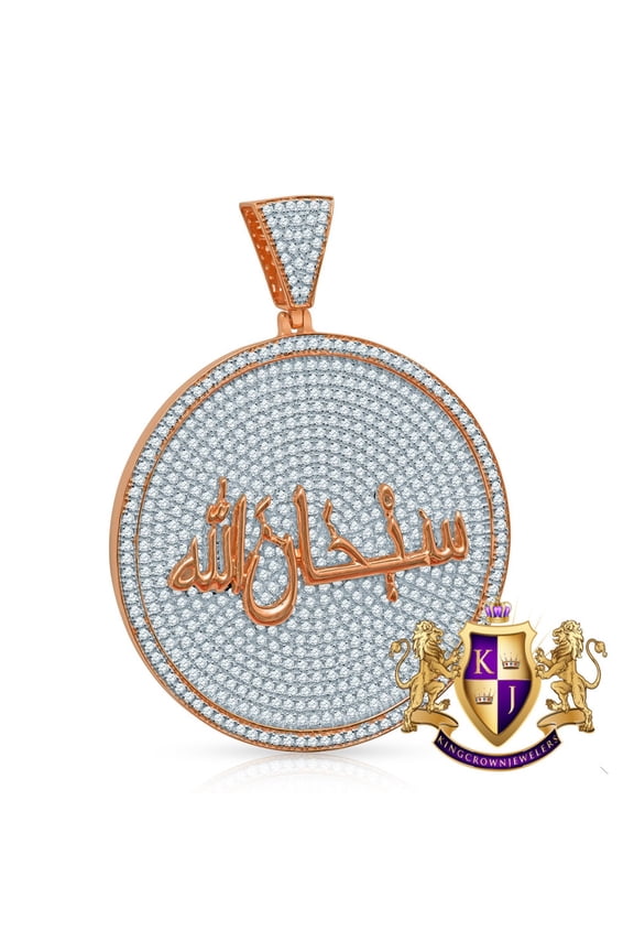 2.55'' 14K Rose Gold Over Real Sterling Silver SubhanAllah Muslim Arabic Islamic Custom Allah Pendant Medallion CharmPure Italian Sterling Silver Mens 14K Gold Finish Lab Diamond Subhanallah Muslim Arabic Allah Charm Islamic Pendant $149.99