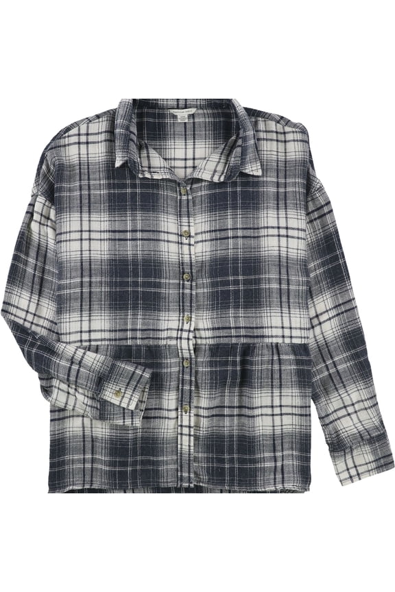 American Eagle Womens Flannel Peplum Button Up Shirt, Blue, X-Small From $17.99