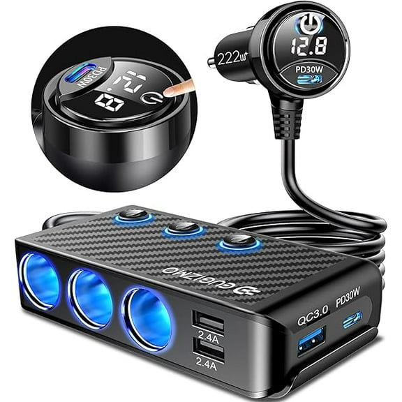 current price $15.983 Socket Cigarette Lighter Adapter 3 USB+2 Type C Port Quick Car Charger Splitter with LED Voltage Display and on/off Switch for iPhone Samsung