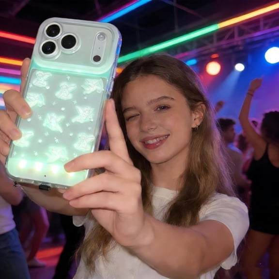 Vibrant LED Bowknot Phone Case, Built-in Light Up Phone Cases, Multiple Pattern & Flash Modes, Castle Phone Cases for iPhone 13/14/15/16/17, Perfect for Daily Use (iPhone 14,Angel) From $9.99