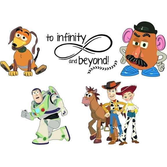 Toy Story Characters Wall Decal - To Infinity And Beyond - DIY Adhesive Vinyl Animation Quotes Sticker | 32" x 48" Kids Bedroom Living Room Removable Decoration Design