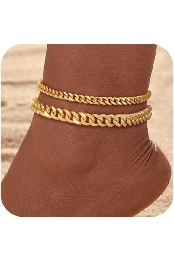 Gold Ankle Bracelets for Women Waterproof - Dainty Gold Anklets Trendy Layered 14K Gold/Silver Plated Stackable Chunky Cuban Link Chian Anklet Bracelet Set for Women Non Tarnish Jewelry Gift $29.99