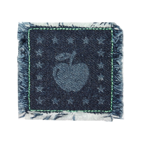 current price $6.99ID 3627 Apple and Stars On Denim Patch Blue Jean Badge Iron On Applique