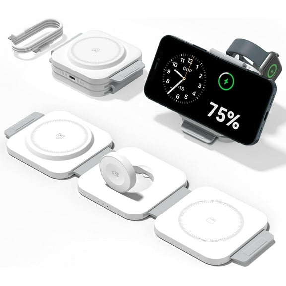 current price $26.99wonima06 3 in 1 Charging Station for Apple Multiple Devices, Foldable Wireless Charger Stand for iPhone 17 16 15 14, Fast Travel Phone Charging Dock for Apple Watch Ultra 11 10 9 8, AirPods 4 3 Pro