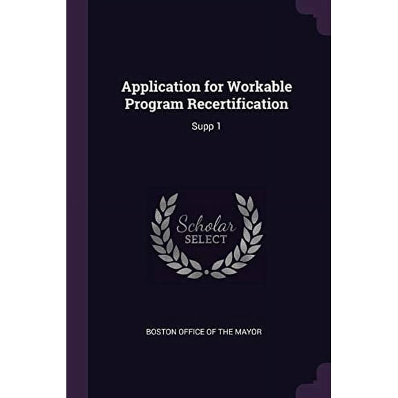 current price $16.86Application for Workable Program Recertification : Supp 1 (Paperback)