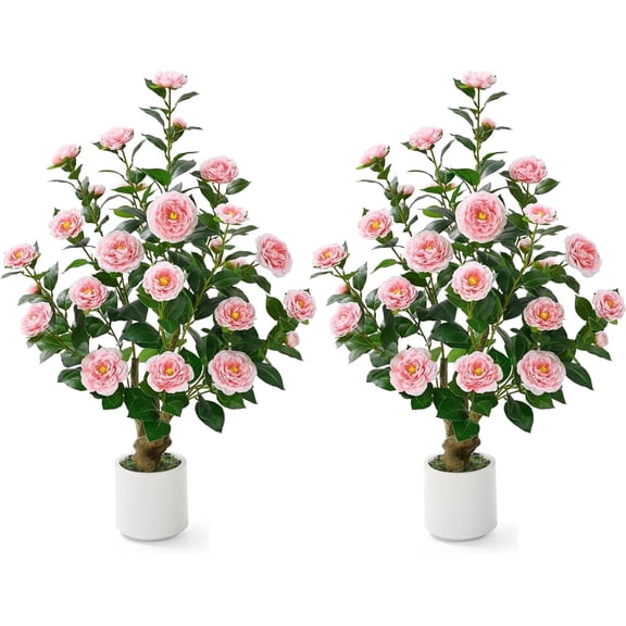 Rollback Lyacmy 3FT 2 Pack Pink Camellia Artificial Tree in Pot, Artificial Plants Indoor Outdoor for Home Decor From $49.99
