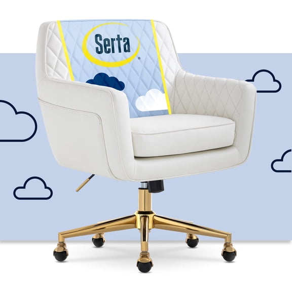 Serta Ashleigh Modern Office Chair Diamond-Tufted Design White Bonded Leather