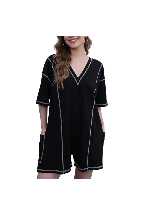 Clearance Rompers for Women Casual Short Sleeve Oversized Athletic Workout Reversible Hot Shot Tee Romper Deep Pockets From $13.58