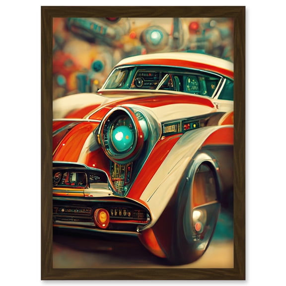 Available in additional 4 optionsAtompunk Retro Striped Red Classic Car In Repair Shop Kids Artwork Framed Wall Art Print A4