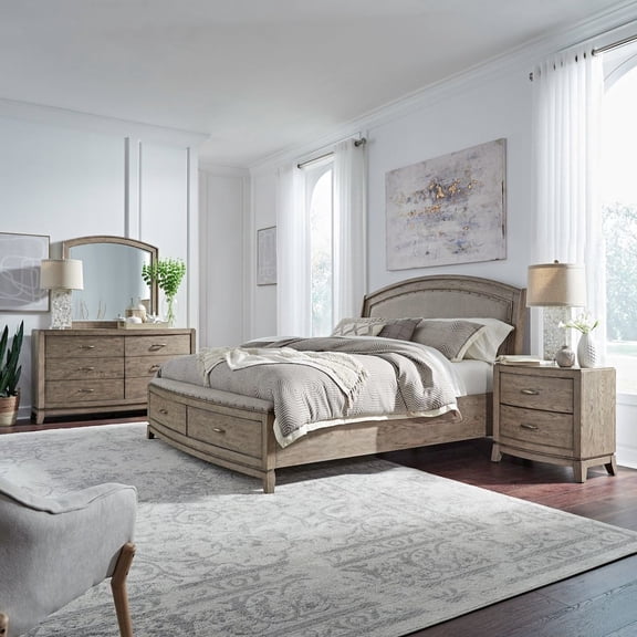 Liberty Furniture Avalon King Upholstered Storage Bed, Dresser & Mirror - Bedroom Furniture Sets $2,349.99 Was $2,589.99