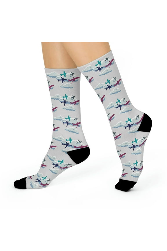 Airplane Socks Unisex Stretchy Crew Fun Aviation 1 Pair By Atlas Wanderlust $20.99