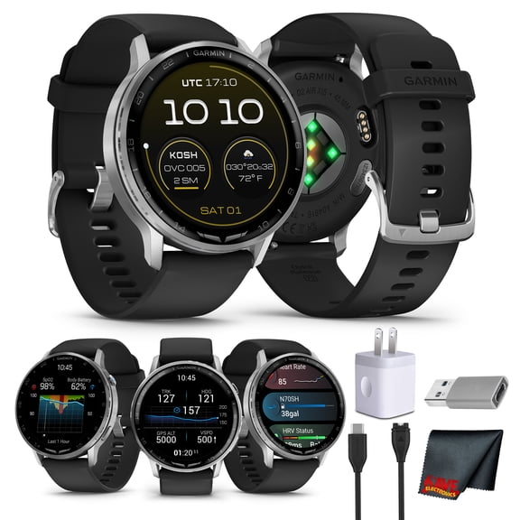 Garmin D2 Air X15 Aviation Smartwatch, 45mm AMOLED Touchscreen, GPS Direct-To Navigation, Aviation Weather, Built-In LED Flashlight, Silver Stainless Steel with Black Silicone Band Bundle $662.99