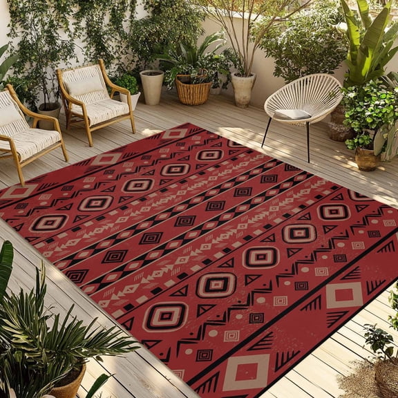 Boho Aztec Outdoor Rug for Patio/Deck/Porch, Non-Slip Large Area Rug 5 x 7 Ft, Red Black Ethnic Abstract Geometric Art Indoor Outdoor Rugs Washable Area Rugs, Reversible Camping Rug Carpet Runner From $92.45