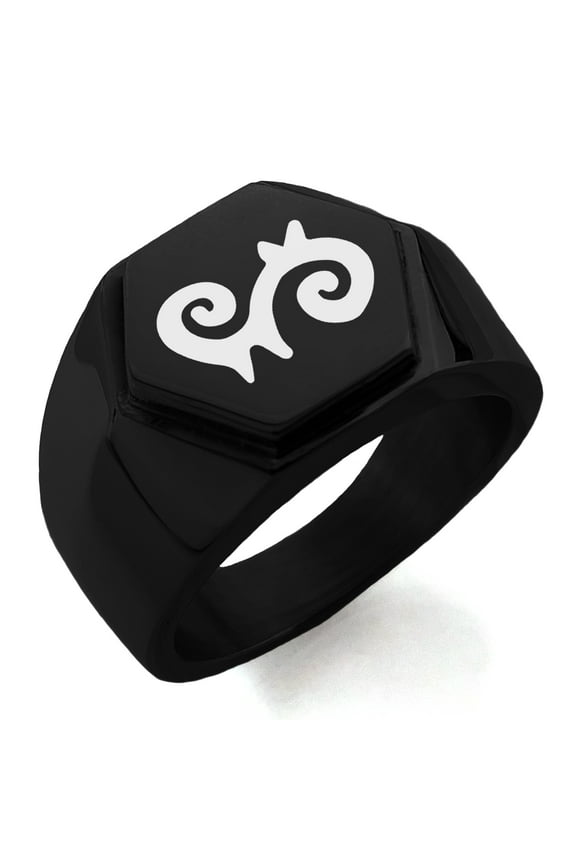 Stainless Steel Aztec Warrior Mask Rune Engraved Hexagon Crest Flat Top Biker Style Polished RingStainless Steel Aztec Ouroboros Serpent Rune Engraved Hexagon Crest Flat Top Biker Style Polished Ring From $15.00