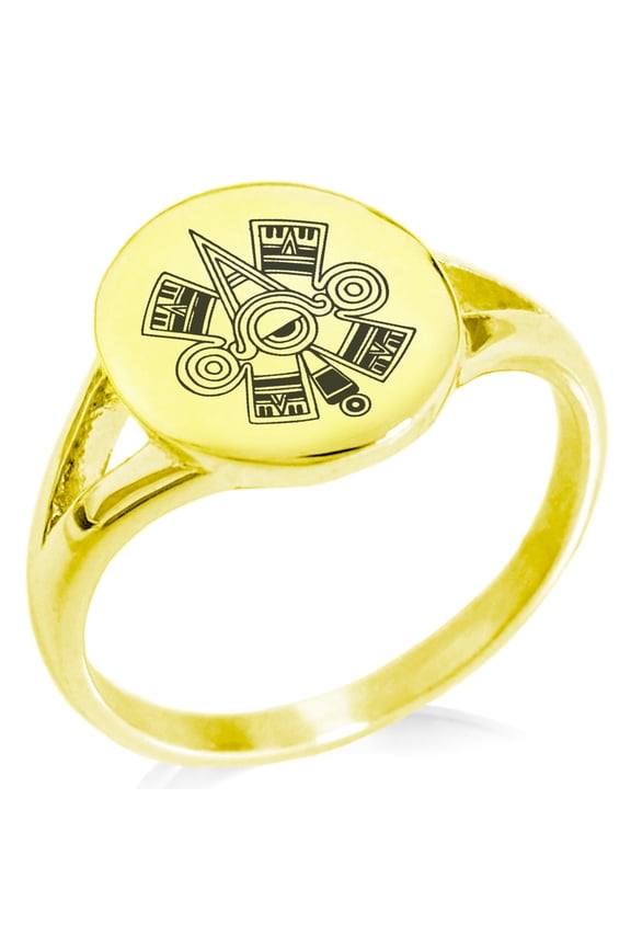 Stainless Steel Aztec Adaptability Rune Minimalist Oval Top Polished Statement Signet Ring14kt Yellow Gold Mens Aztec Calendar Fashion Ring, Mens Size: 10