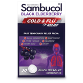 Sambucol Elderberry Cold and Flu Relief Tablets, Homeopathic Medicine, 30 Count