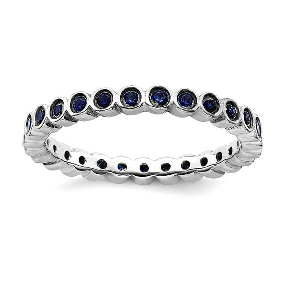 Available in additional 3 options925 Sterling Silver Bezel Polished Patterned Stackable Created Sapphire Ring Size 7 Stackable Ring for Women