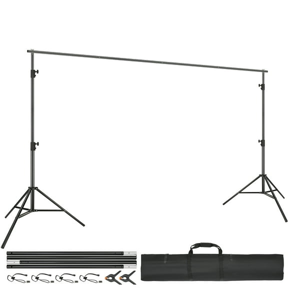 10x8.5ft Adjustable Background Stand Photography Video Studio Backdrop Kit, 6 Backdrop Clamps, 2 Sandbags for Wedding,Party,Stage Decoration,Black From $29.99