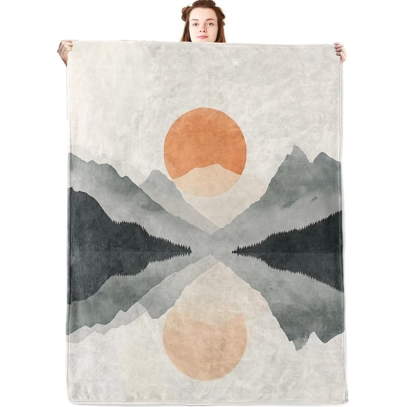 Minimalist Mountain Sunset Flannel Blanket,Modern Rustic Throw with Abstract Nature Landscape and Reflection,Lightweight Fleece Blankets for Adults,Couch,Cabin,Bed,Camping Decor Gifts,50x40in From $19.99