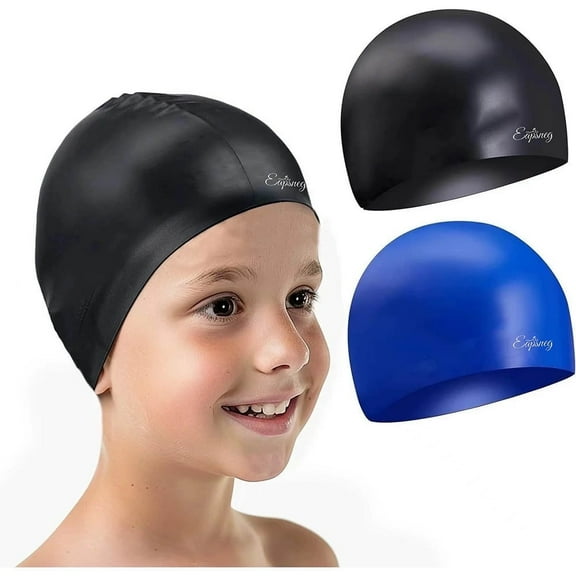 eapsneg 2 Pack Kids Swim Cap for Age 4-12, Durable Silicone Swimming Cap for Boys Girls Youths, Comfortable Fit for Long/Short Hair $11.99