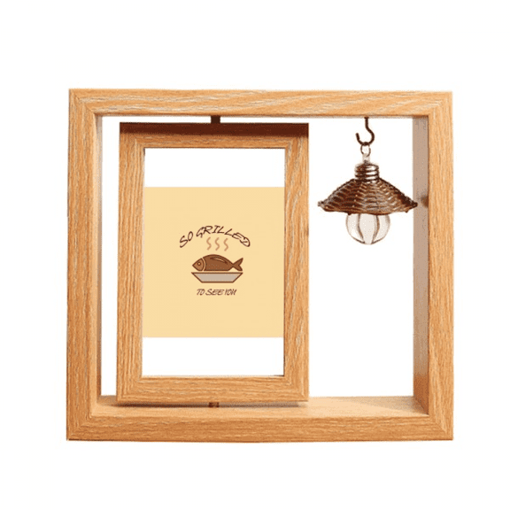current price $29.99Barbecue Food Fish Fragrance Happy Wooden Rotating Picture Photo Frame 4x6