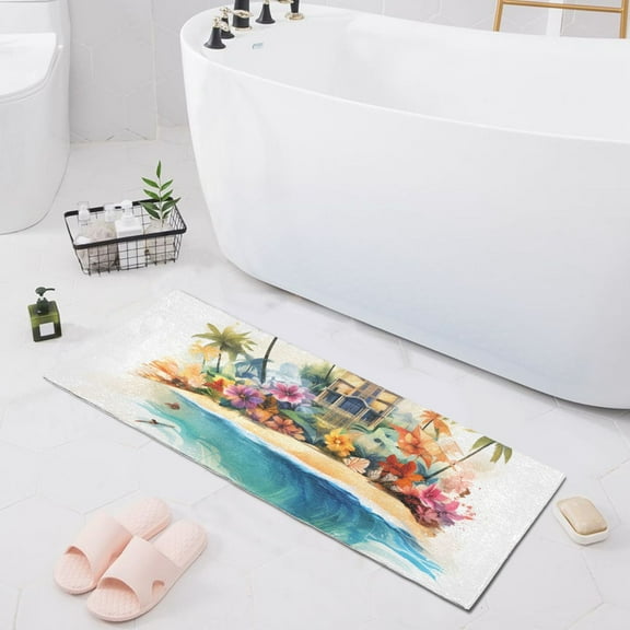 current price $25.99Bath Mat Soft Plush Non-Slip Absorbent Bathroom Rugs 39"x20" Architecture on Beach