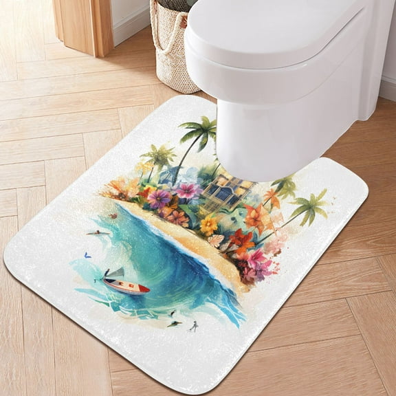 Toilet Rug U-Shaped Bathroom Rugs Non-Slip Soft Plush Machine Washable Contour Bath Mat Architecture on Beach 24x20 From $17.99