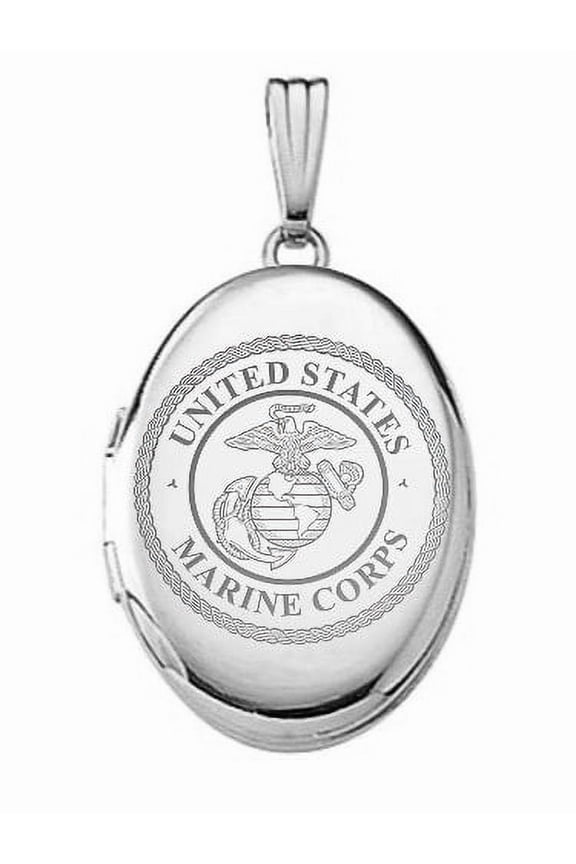 Sterling Silver Oval Marine Corps Picture Locket 3/4 Inch X 1 Inch Sterling Silver $59.95