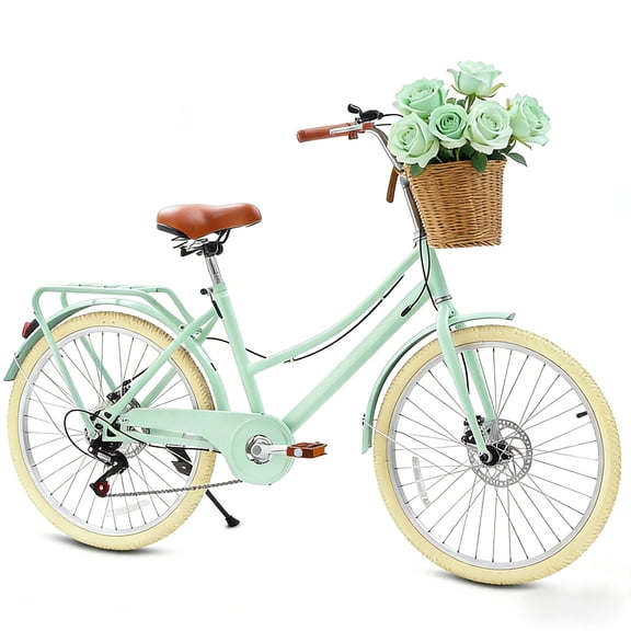 24-Inch 6-Speed Steel Frame Commuter Bike for Adults with Front Pet Basket, Double Disc Brakes, Shimano Shifter, Comfortable Saddle$299.99current price $299.9926" Mountain Bikes for Adults Teens, 24 Speed Mountain Bicycle w/ Disc Brakes, Bike for Mens Womens, City Commuter Bikes Suit for Rider Height 5'4"-6'2", 85% assembled (Green)