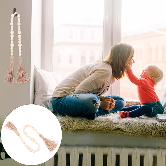 HAMPPLIES 1Pack Farmhouse Rustic Wood Beads with Tassels in Beige for Door Knobs and Tray Styling $15.87