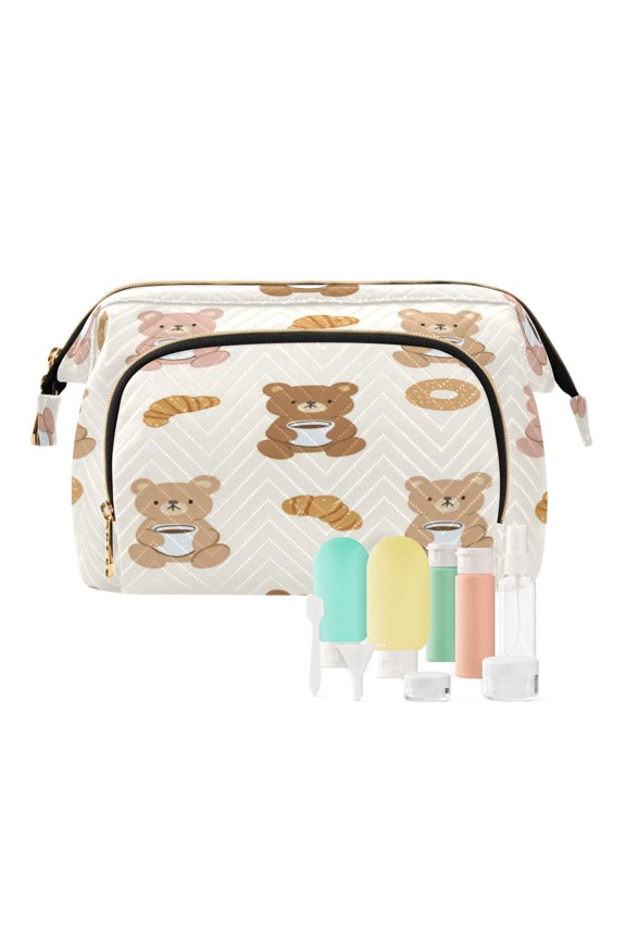 Wavy Quilted Cosmetic Bag Large-Capacity Travel Toiletry Organizer Includes 9-Piece Portable Travel Bottle Set Small Bear PatternWavy Quilted Cosmetic Bag Large-Capacity Travel Toiletry Organizer Includes 9-Piece Portable Travel Bottle Set Giant Cute Bear $22.99