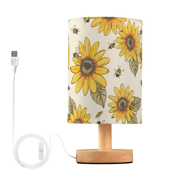 current price $23.99Bee Flowers Table Lamp USB Bedside Desk Nightstand Lamp Printed Gifts Small Lamp Wood Base for Bedroom Living Room Kids Room College Dorm