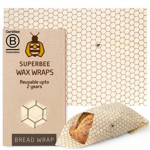 Available in additional 3 optionsSuperBee Beeswax Wraps Bread Wrap XXL Large Reusable Beeswax Wrap for Food, Vegetables, Cheese, and Bowl Covers Eco Alternative Food Wrap Hexagonia 16x 20"
