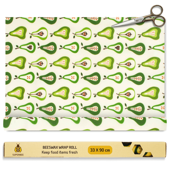 SUPERBEE Beeswax Wrap Roll XL, Reusable Beeswax Wraps for Food, Wrap Roll, Reusable for Wrapping Vegetables, Cheese Paper, Bowl Covers and Sandwich Wrapping Paper, Pears - 35x13"