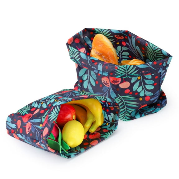 Sekonow 2 Pack Beeswax Wraps Bag for Food, 14x10in, Reusable Bread Bags for Homemade Bread, Beeswax Paper Food Storage Wrap for Sourdough, Sandwich, Cheese, Fruit, Snack, Leaf