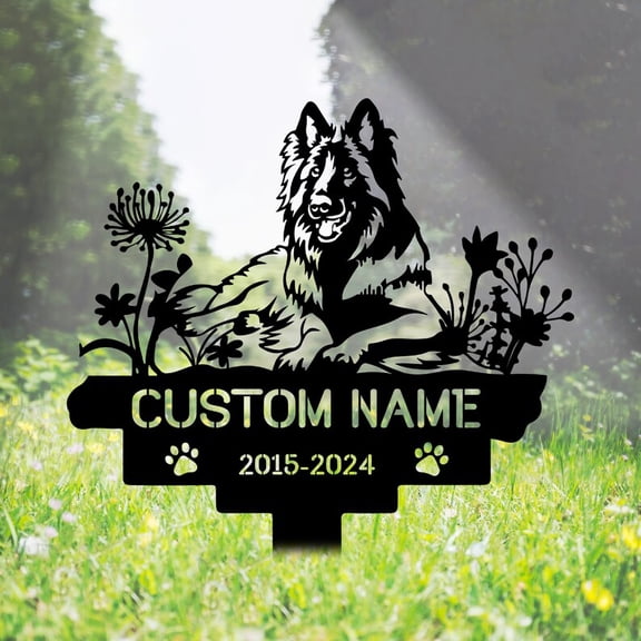 Handmadetneonsign Belgian Sheepdog Dog Memorial Metal With Stake, Dog Stake Metal Name Sign Stake, Garden Metal Stake Decor 59003