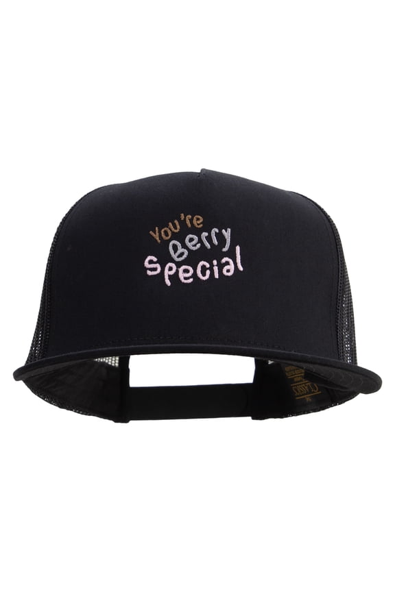 You're Berry Special Embroidered 5 Panel Mesh Trucker Snapback Cap - Black OSFMRed Decorative Berry Themed Beret Hat Soft Warm Female Performing Cap $10.16